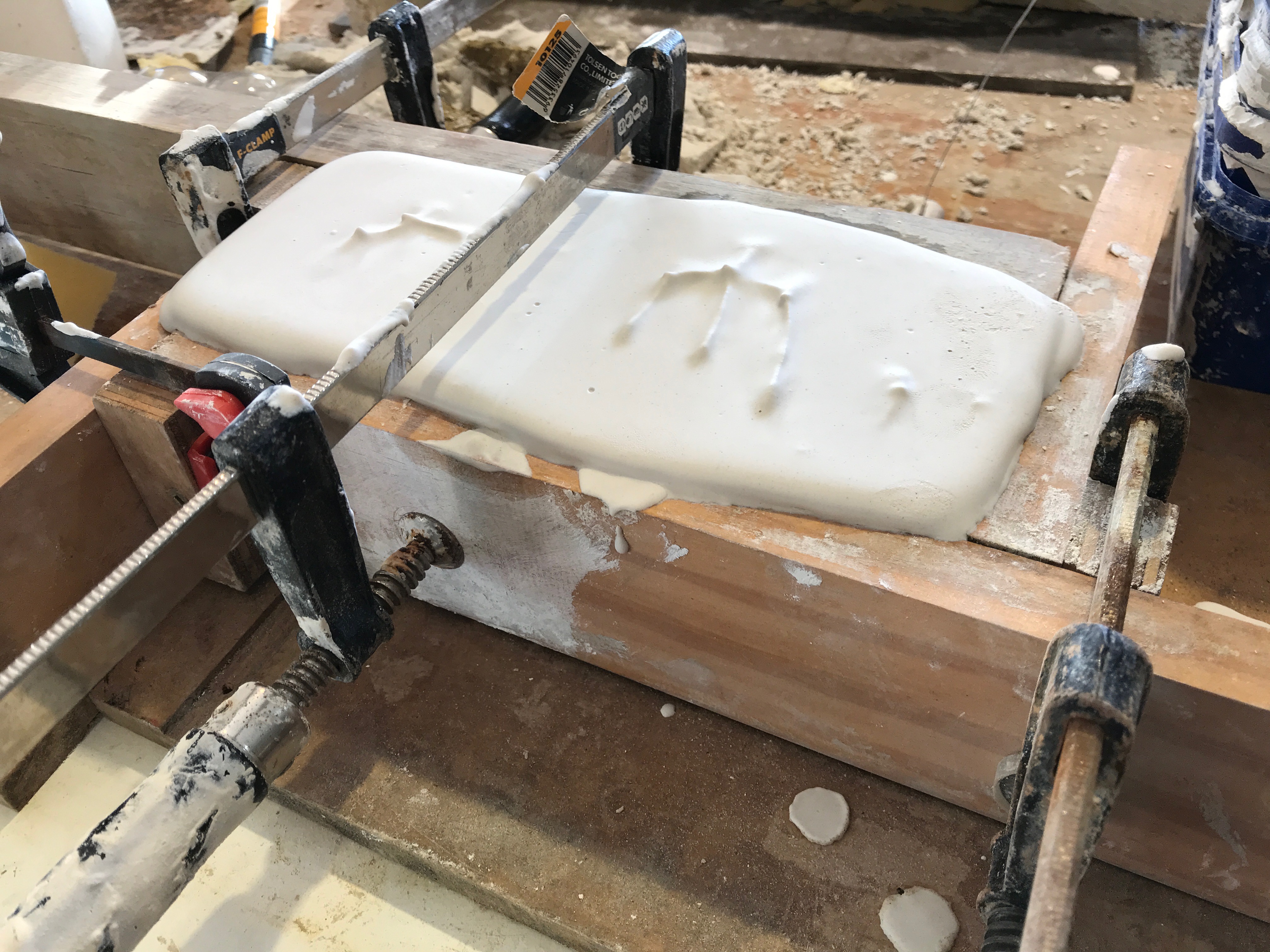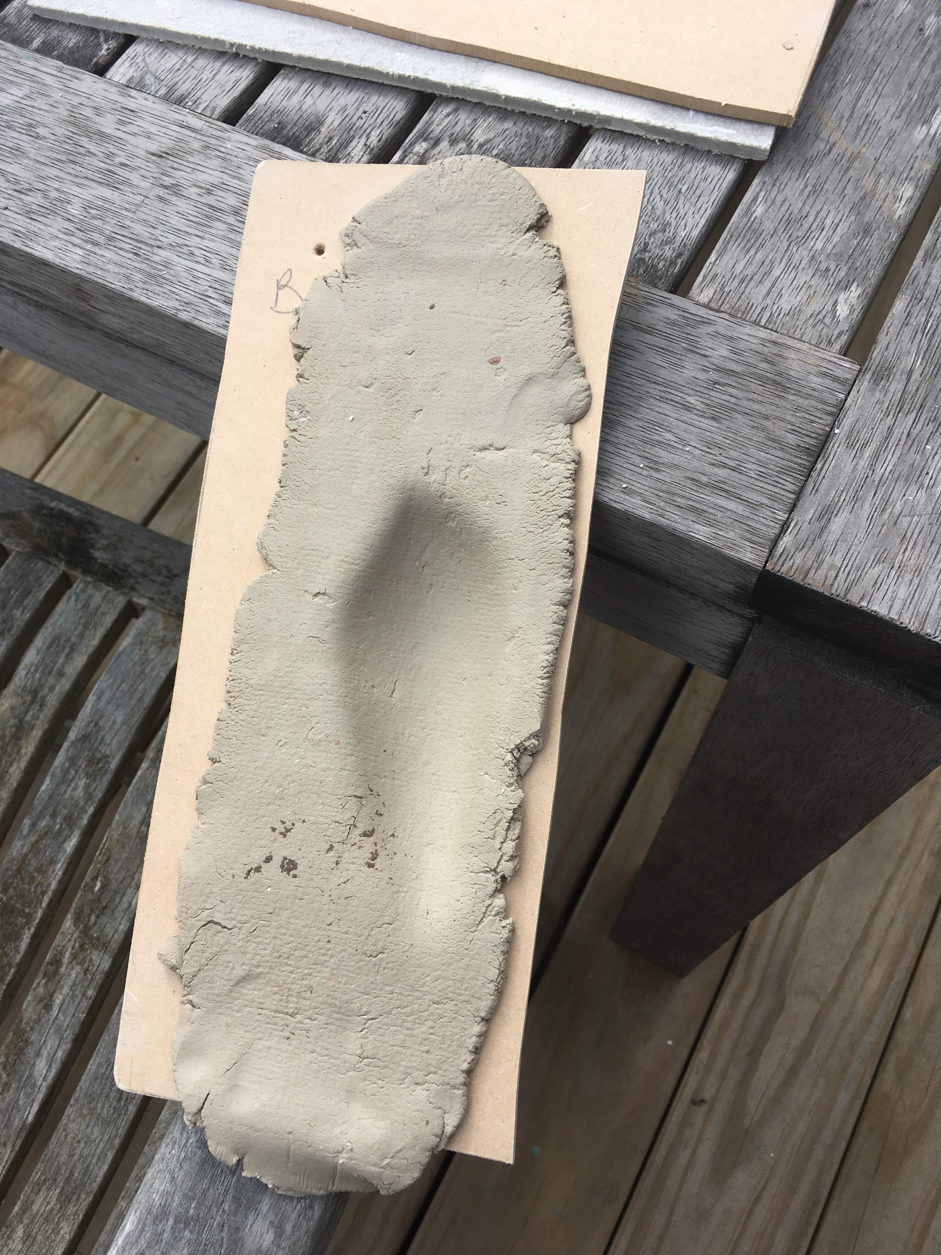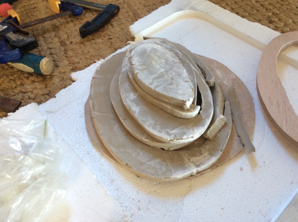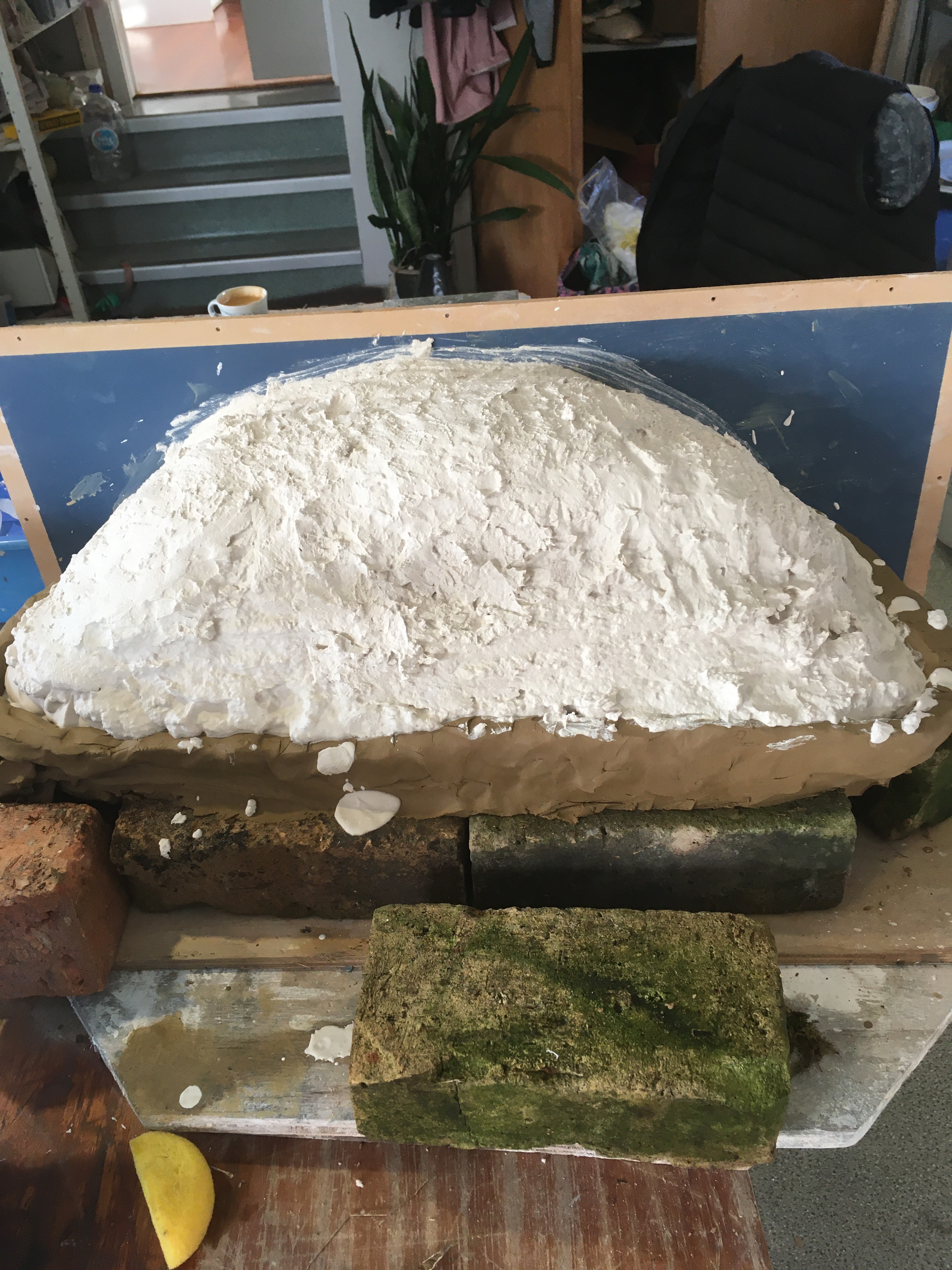 Mould placed on shelf to dry and next week the second part of the slump mould will be completed.