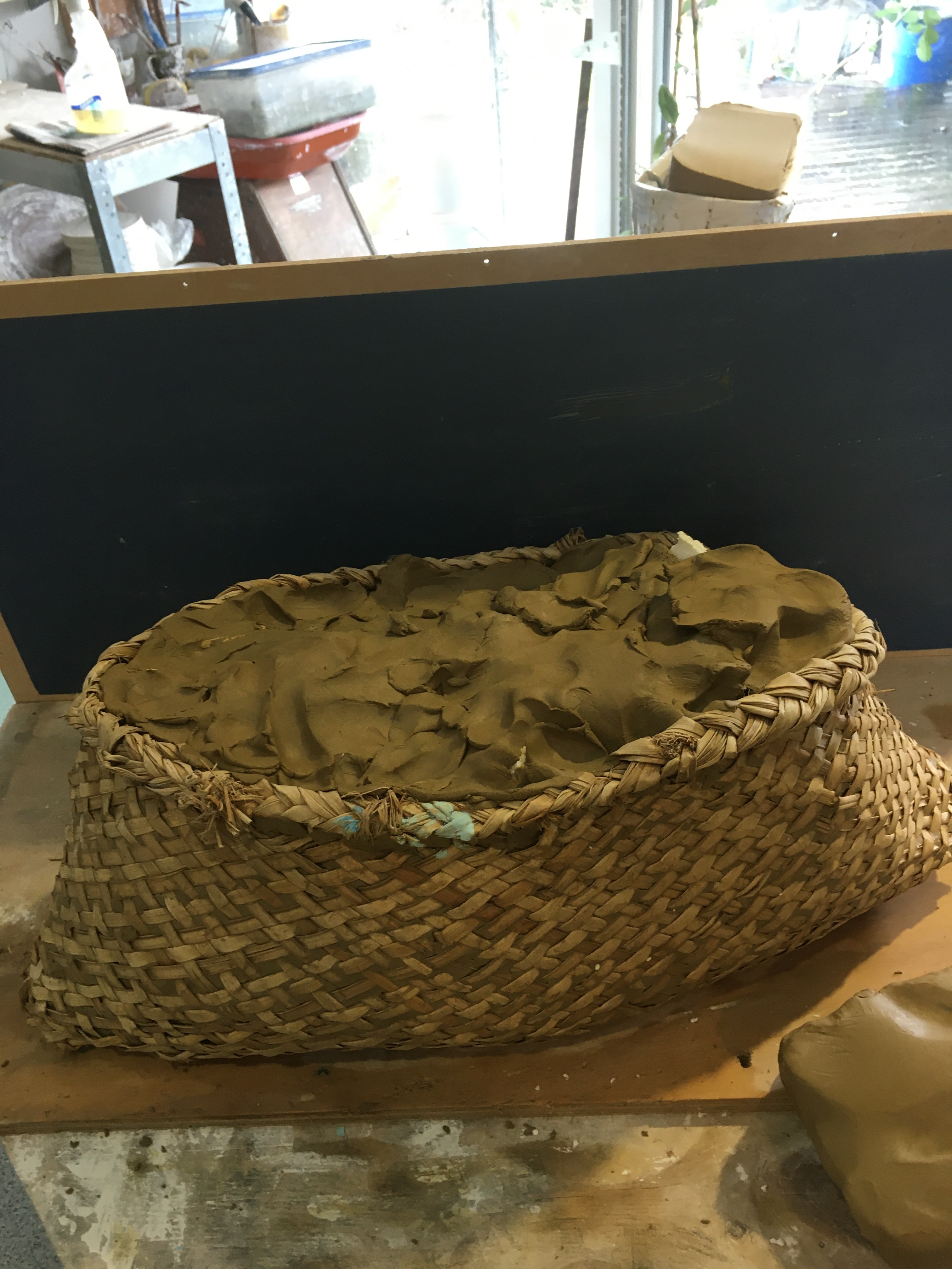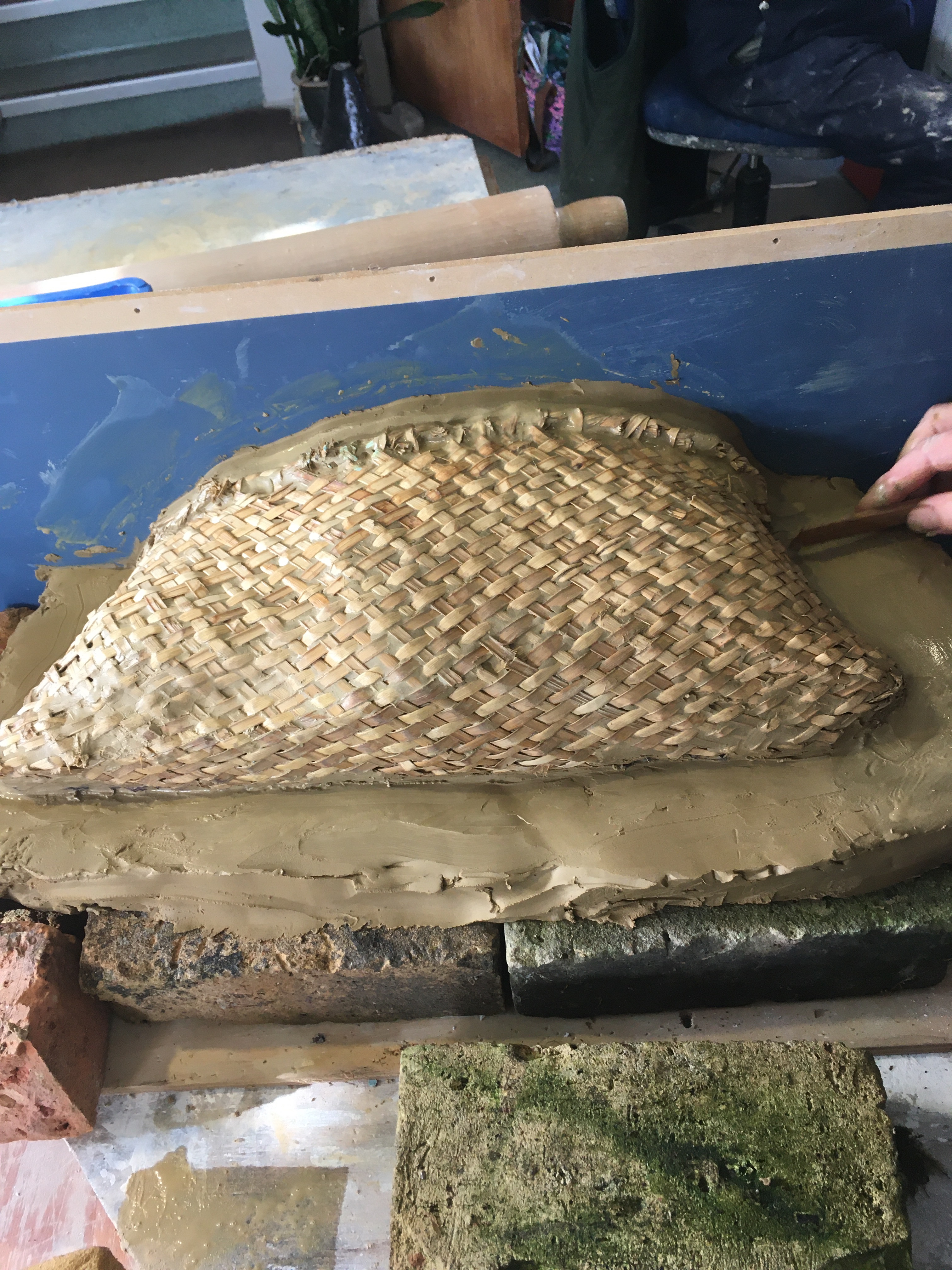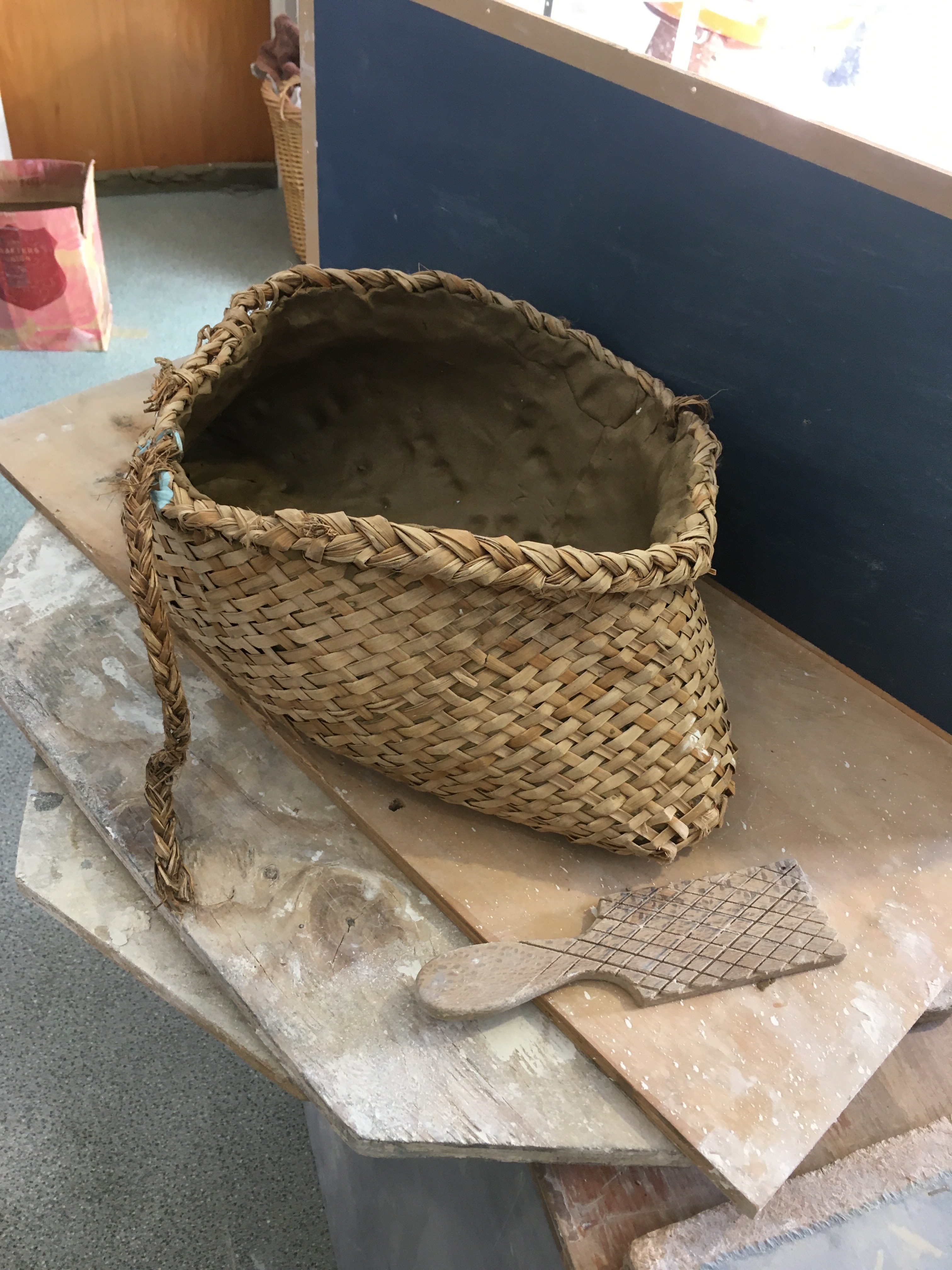 Slab clay applied to inside of kete