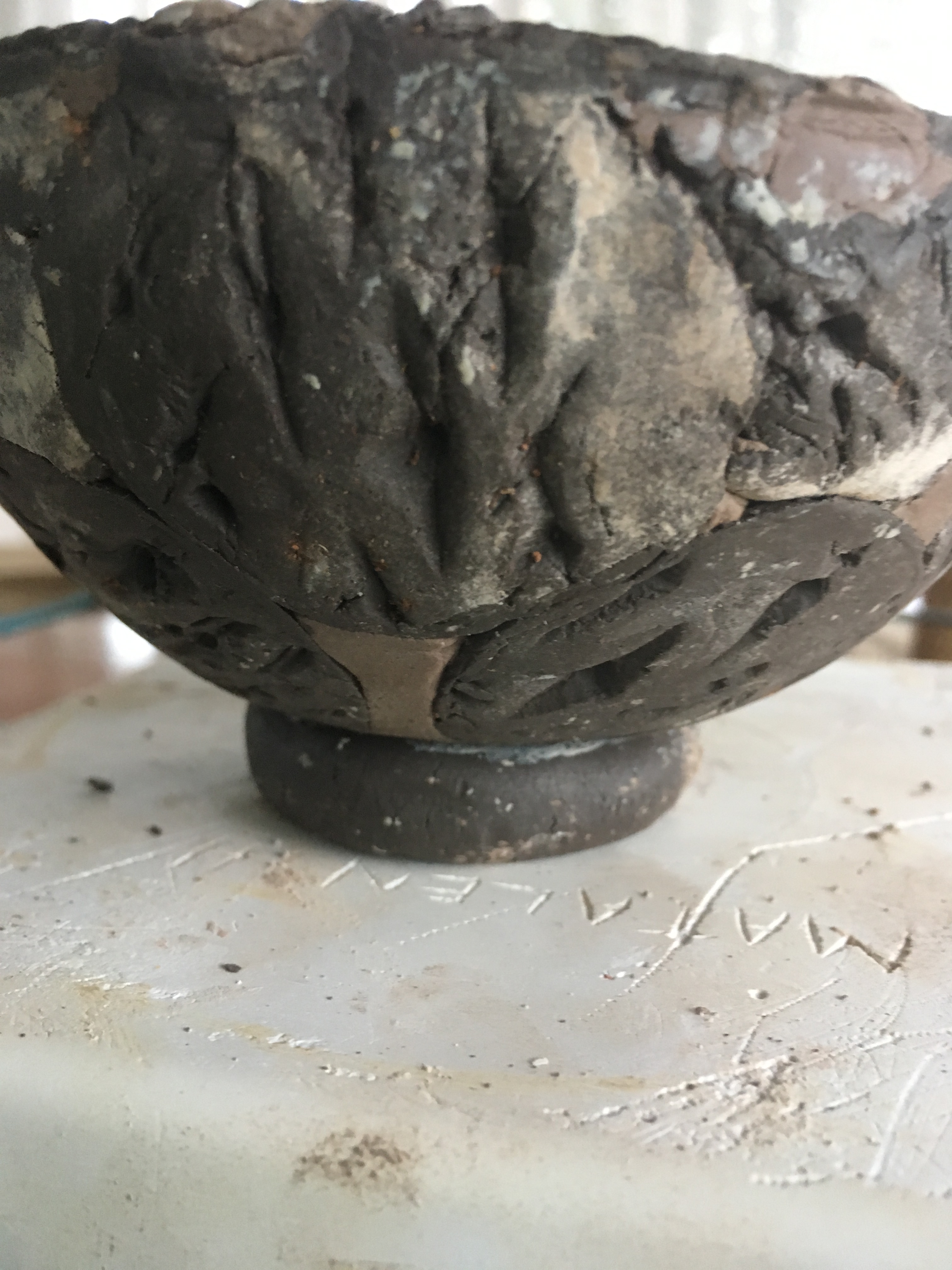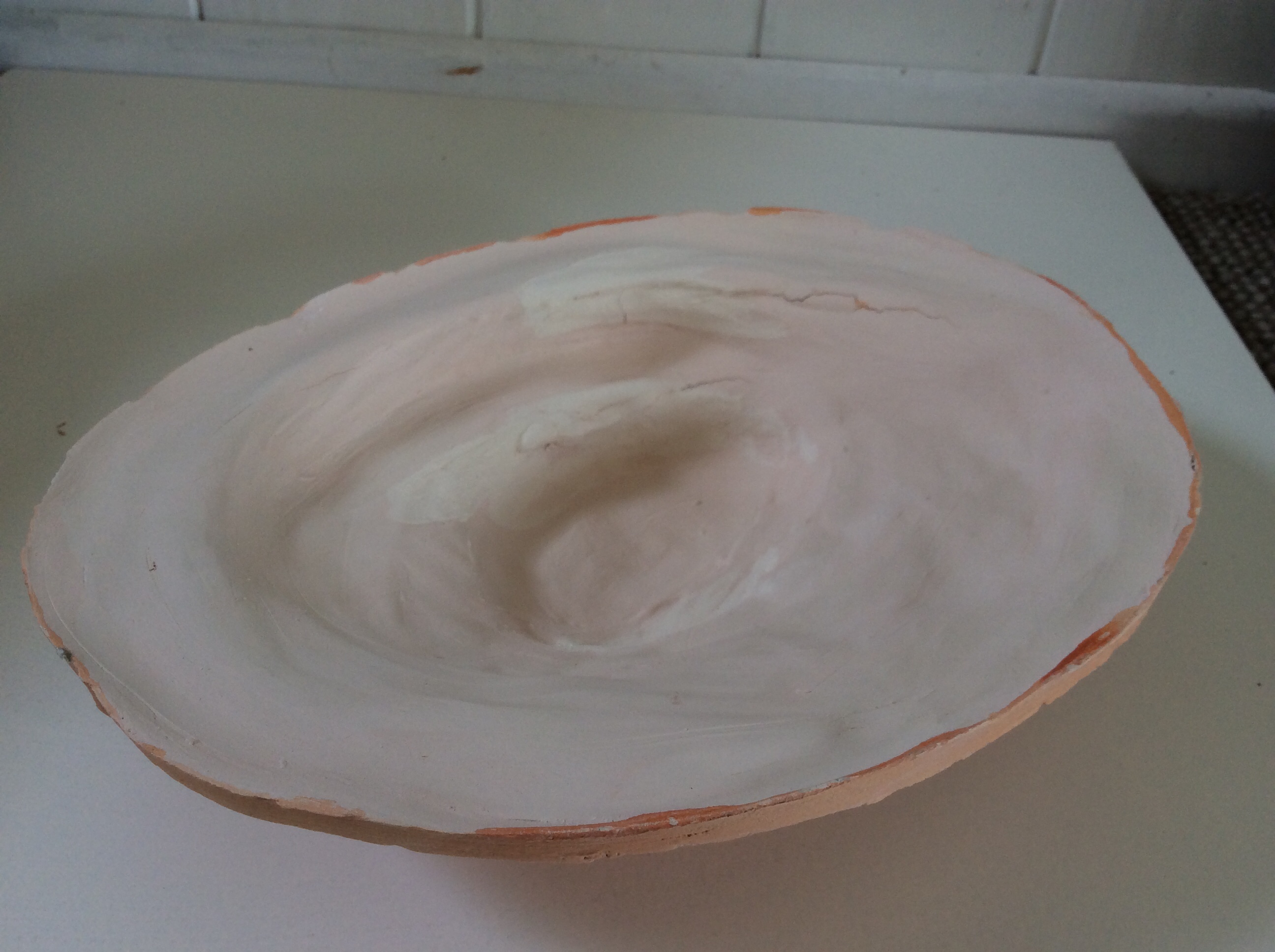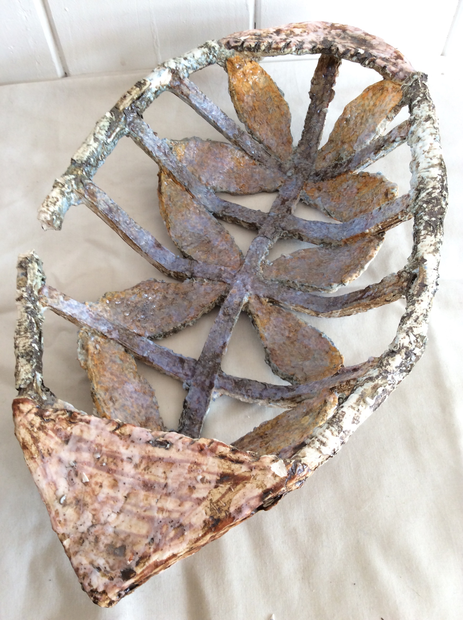 Slab clay applied to inside of kete