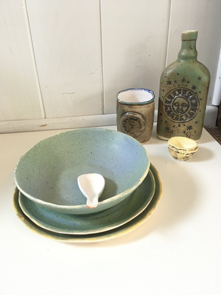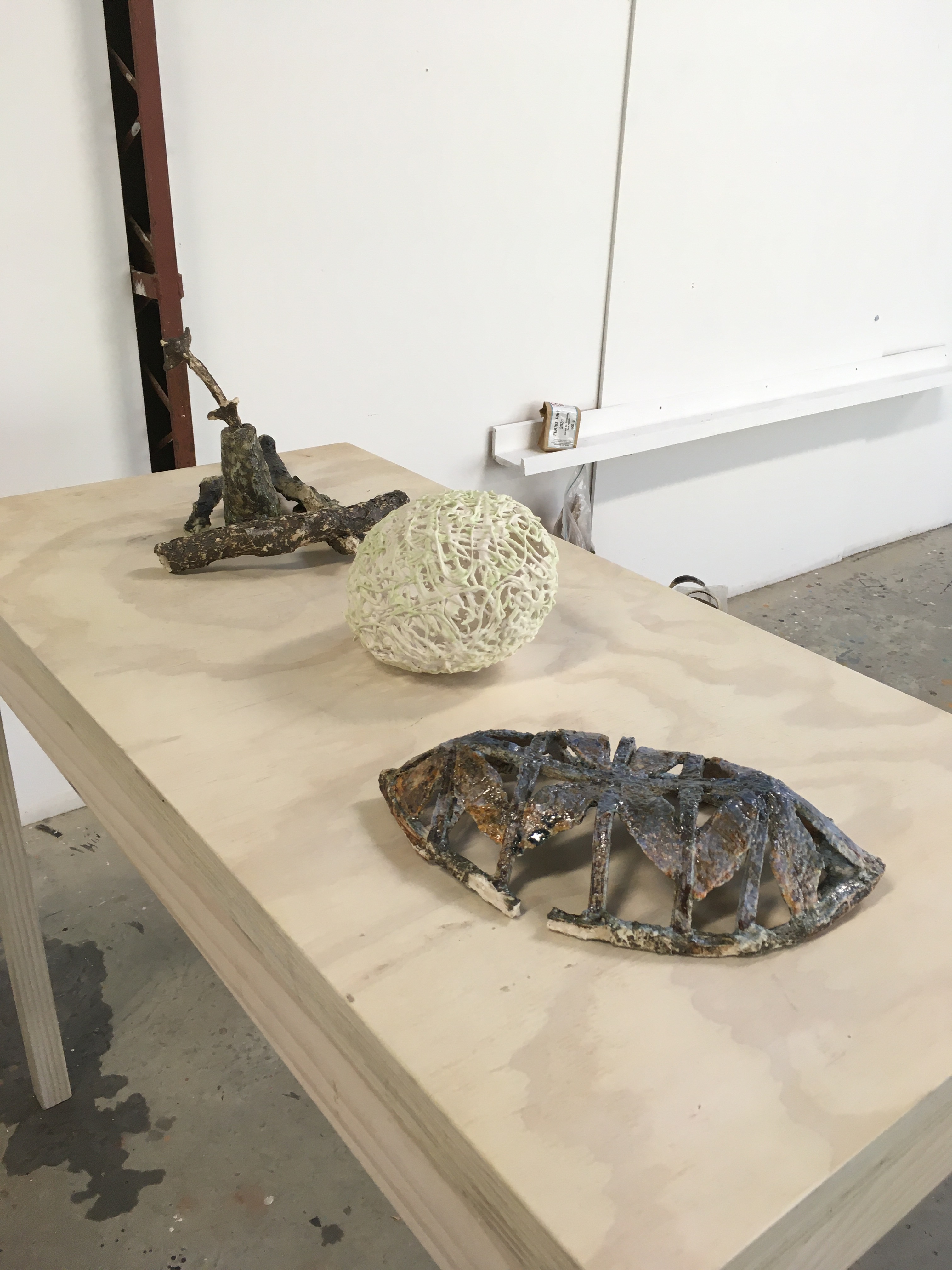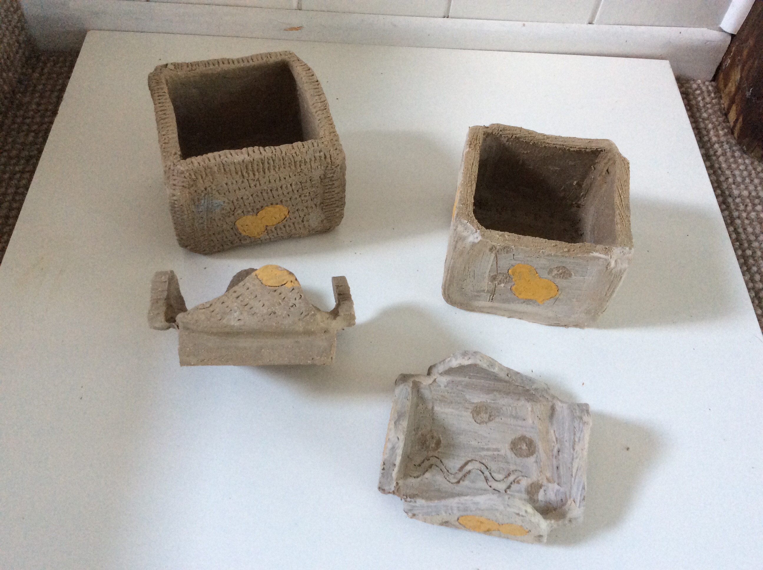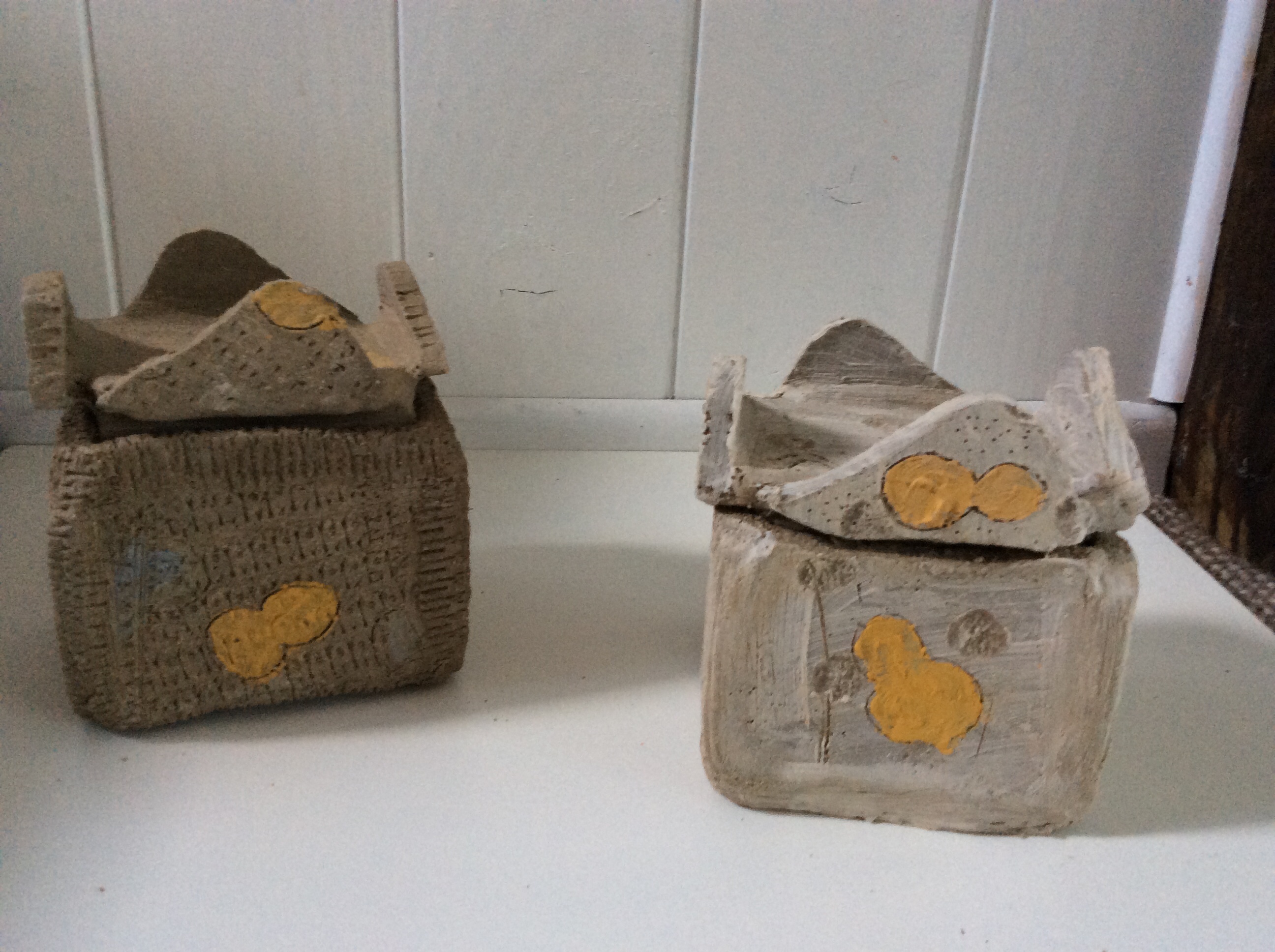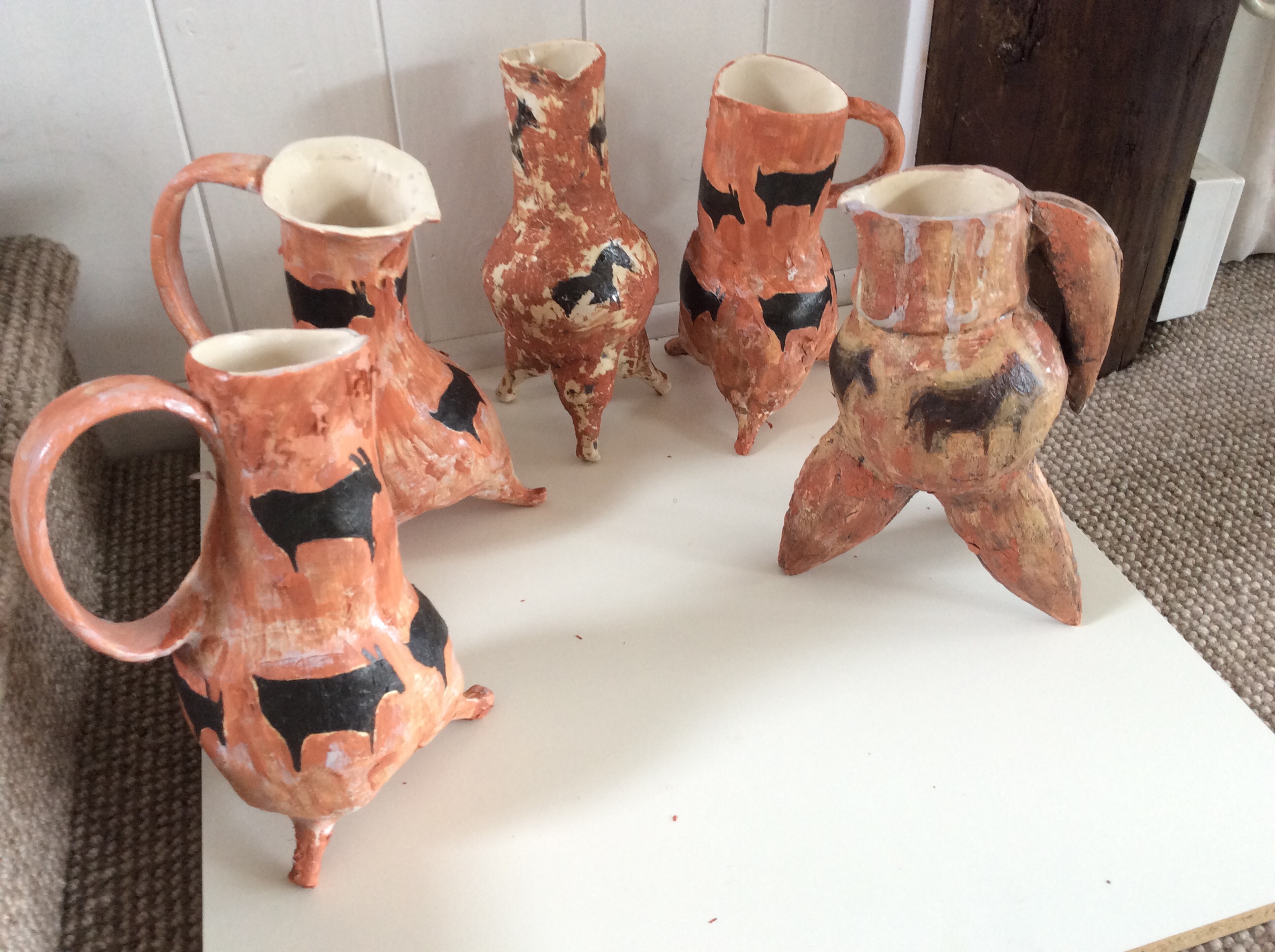 These items apart from the container have been left with Brendon to fire at his work heat temperature which is over 1200 degrees celsius. The container which I slab worked will need to be fired at a lower temperature to keep the terracotta colour.