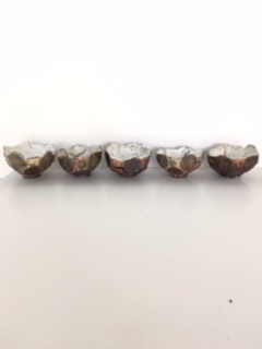 Strained toilet paper roll mixed with plaster mix of 2 kg water and 3 kg plaster. When like porridge scoop used to tip over first layer of plaster.Left to dry and then clay removed from mould .