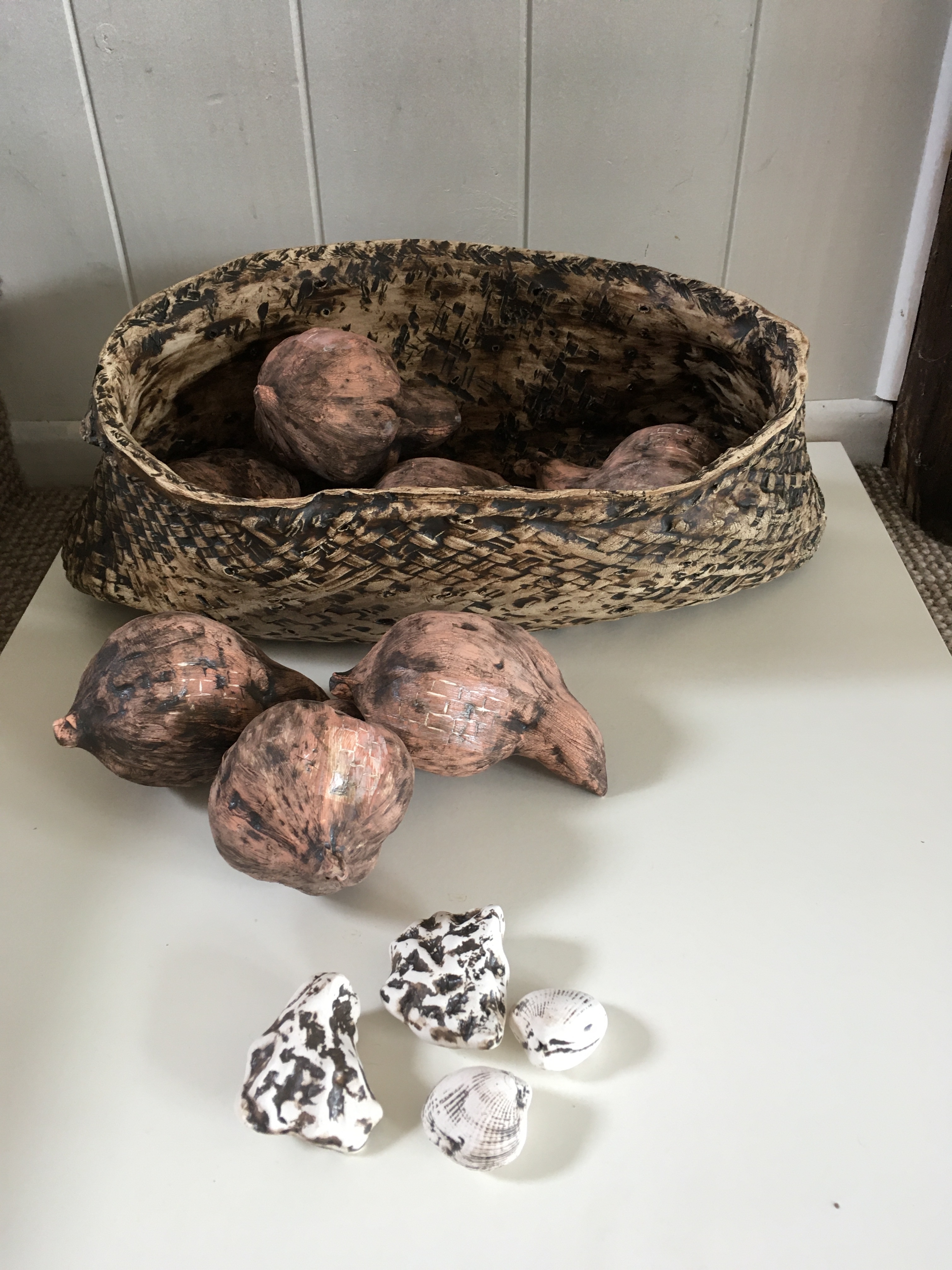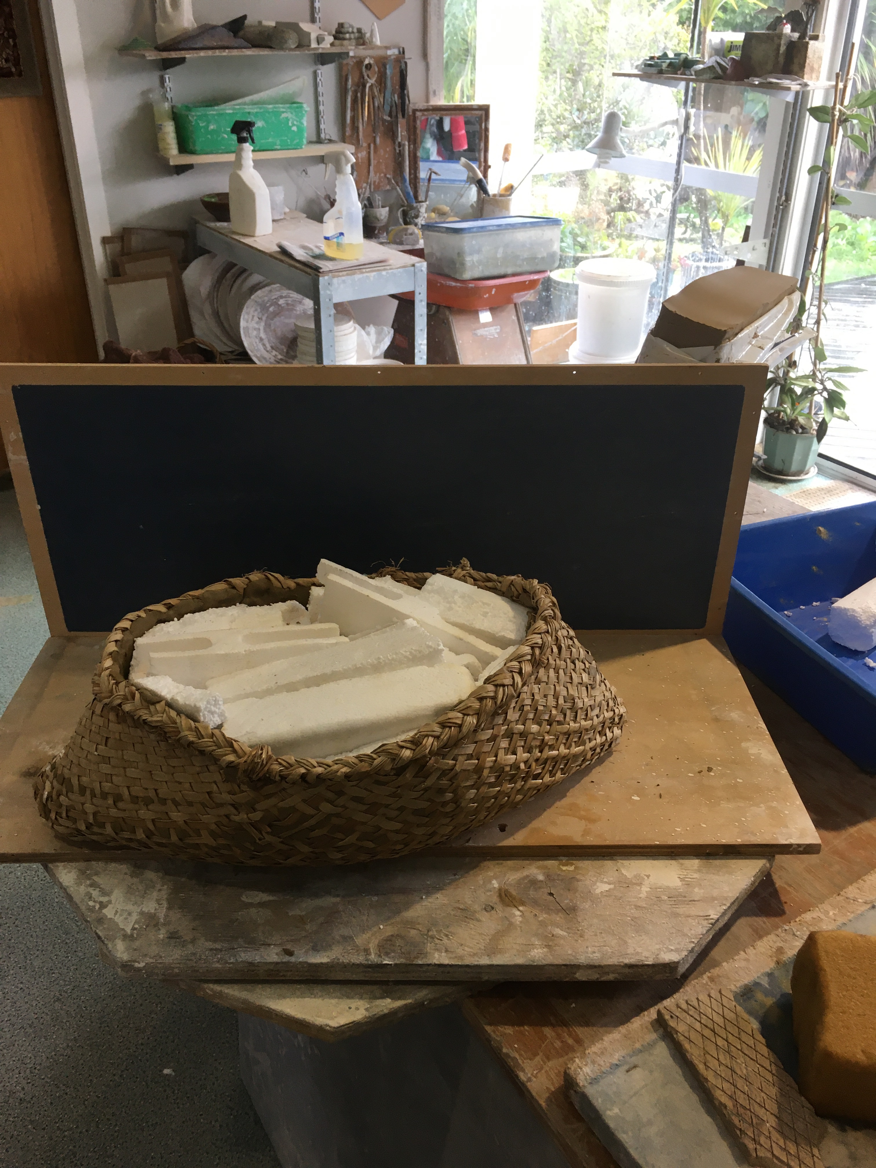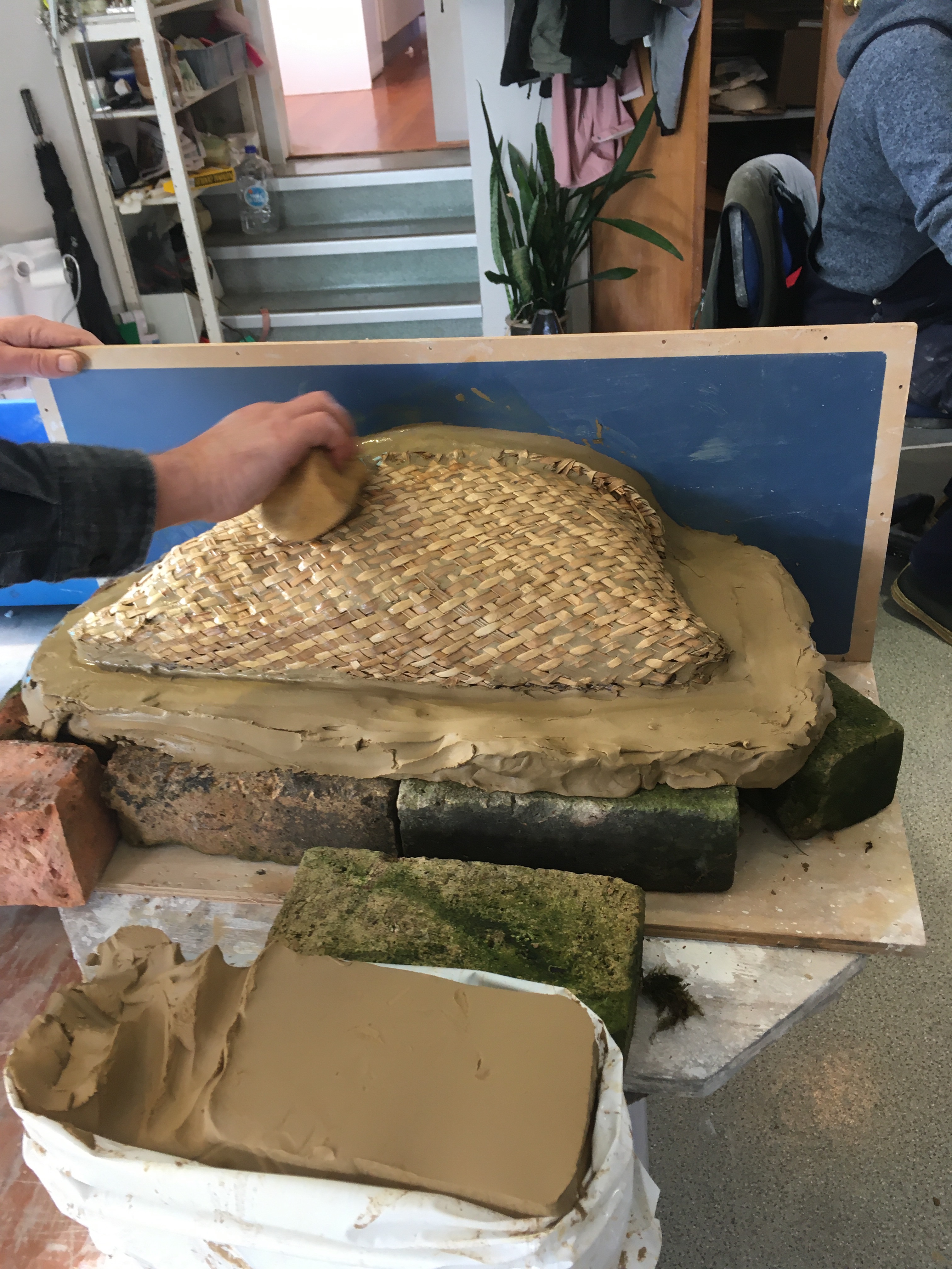 Discussion as to what our projects were. I am keen to make a food Kete mould. To prepare for next workshop by filling kete with polystyrene and used clay.