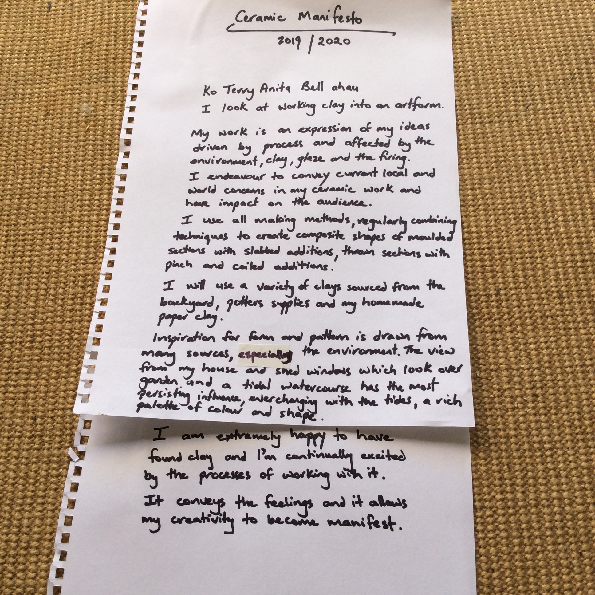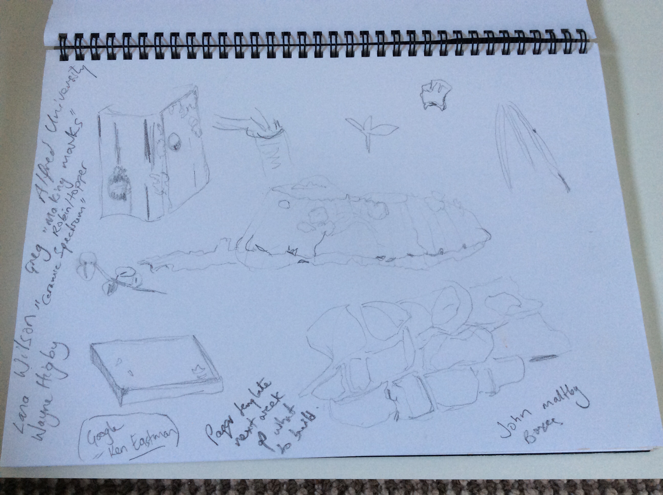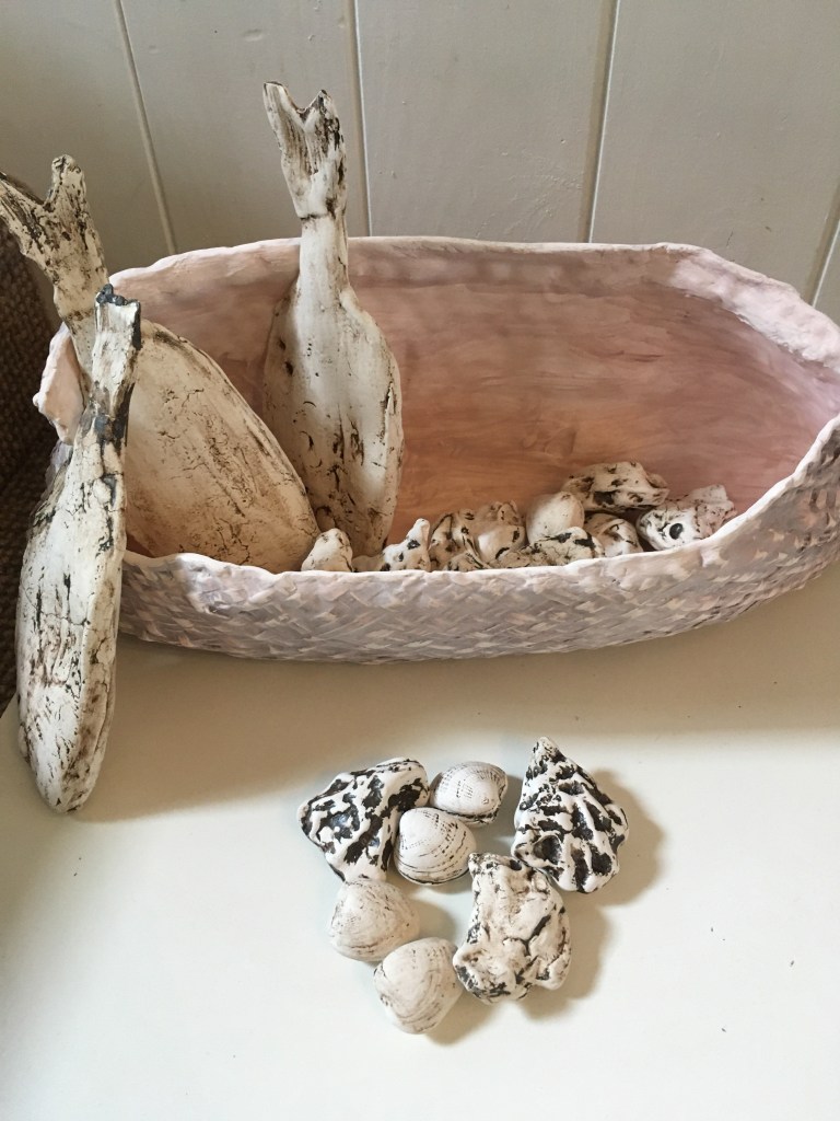 Discussion as to what our projects were. I am keen to make a food Kete mould. To prepare for next workshop by filling kete with polystyrene and used clay.