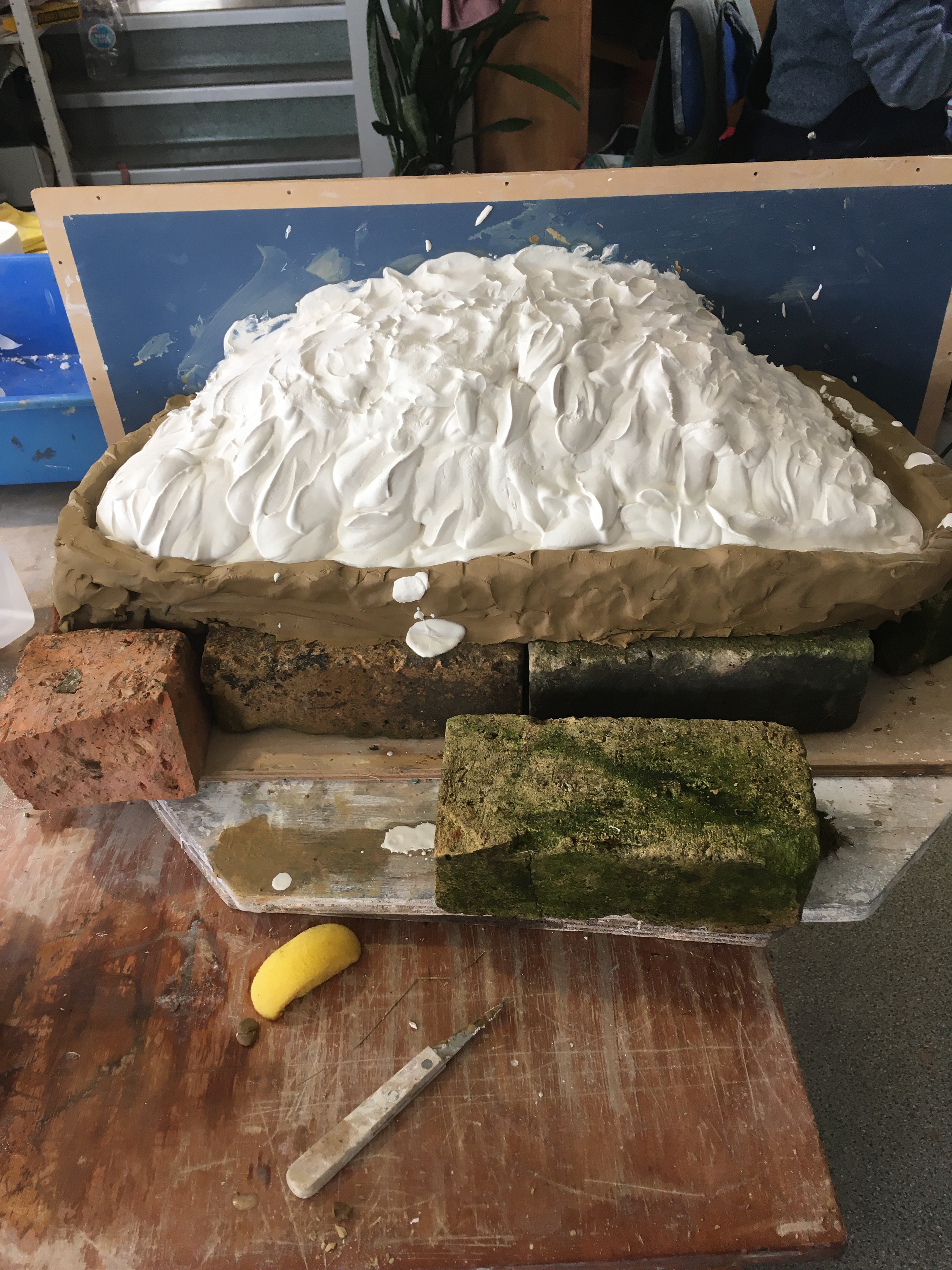 Clay placed over polystyrene
