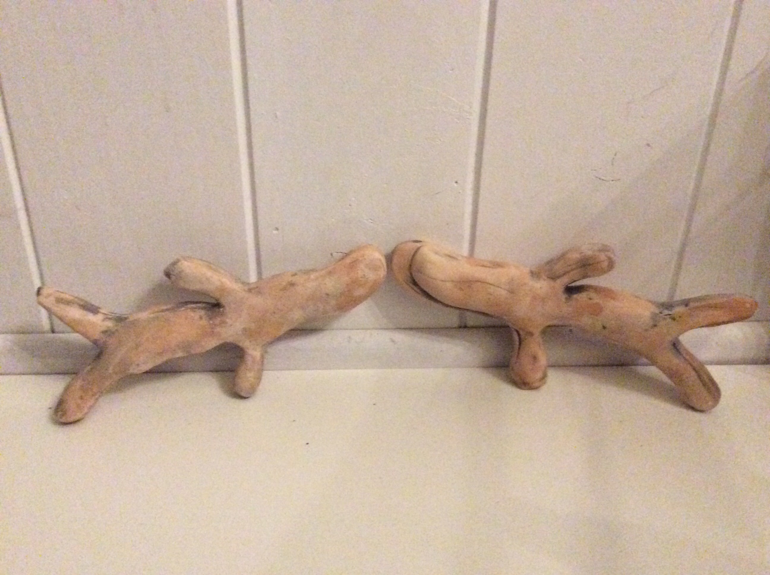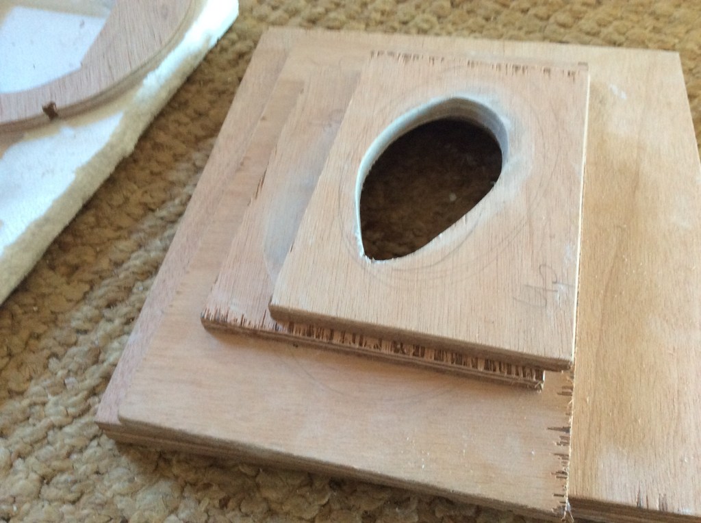 White stoneware clay applied to inside of mould with the wood pieces clamped together. Taken apart once clay dried.